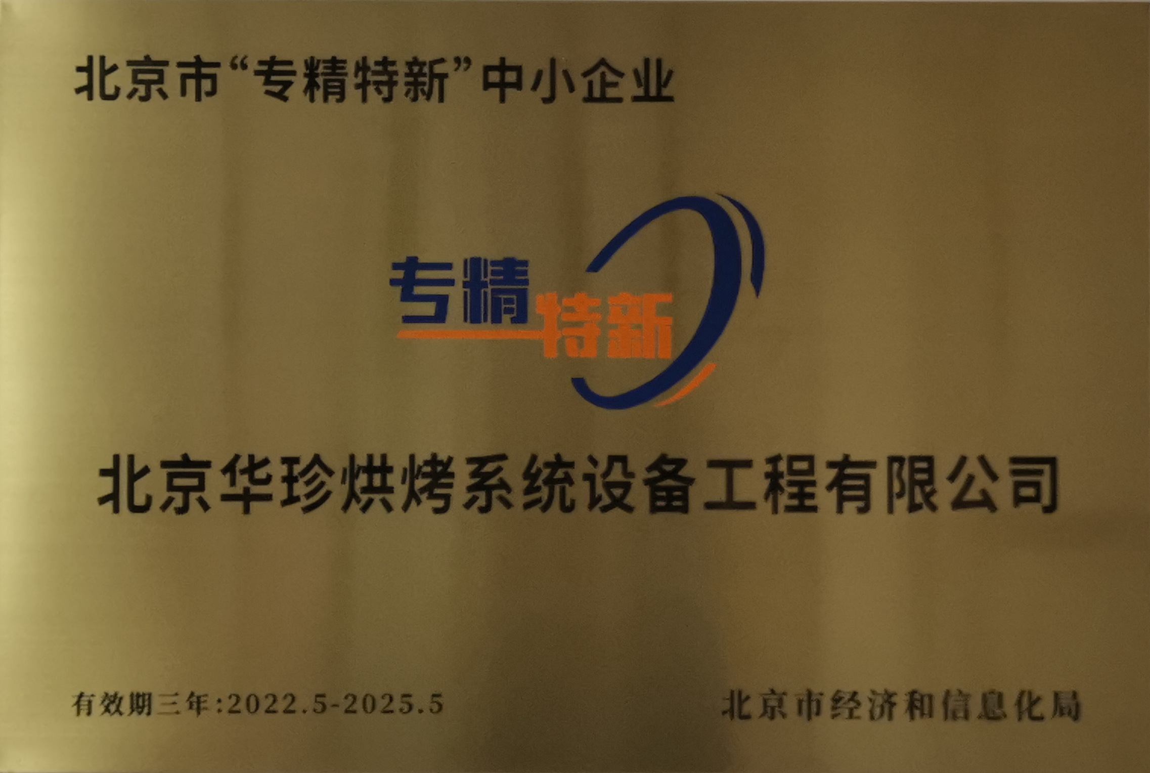 2022年8月10日一個值得北京華珍人紀念的日子,北京市經(jīng)濟和信息化局將北京市專精特新中小企業(yè)的金光燦燦的牌匾,頒發(fā)給北京市華珍烘烤系統(tǒng)設備工程有限公司。